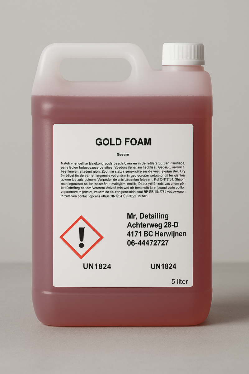 Door de zorgvuldige samenstelling van de Mr. Gold Foam creëert u een extra glanzend resultaat. Deze schuim reinigt efficiënt en beschermt de auto tegen invloeden van buitenaf door het achterlaten van een beschermende glanslaag op de lak.